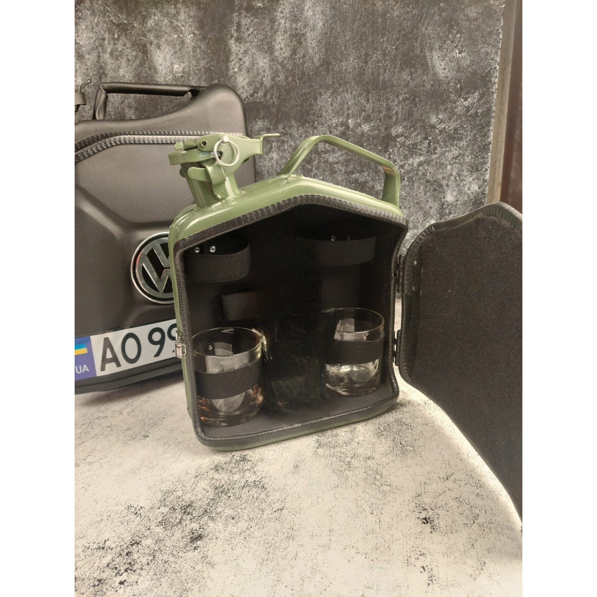 Міні бар каністра зелена на 5л. з посудом у подарунок чоловікові, хлопцю / Подарунковий набір для чоловіка