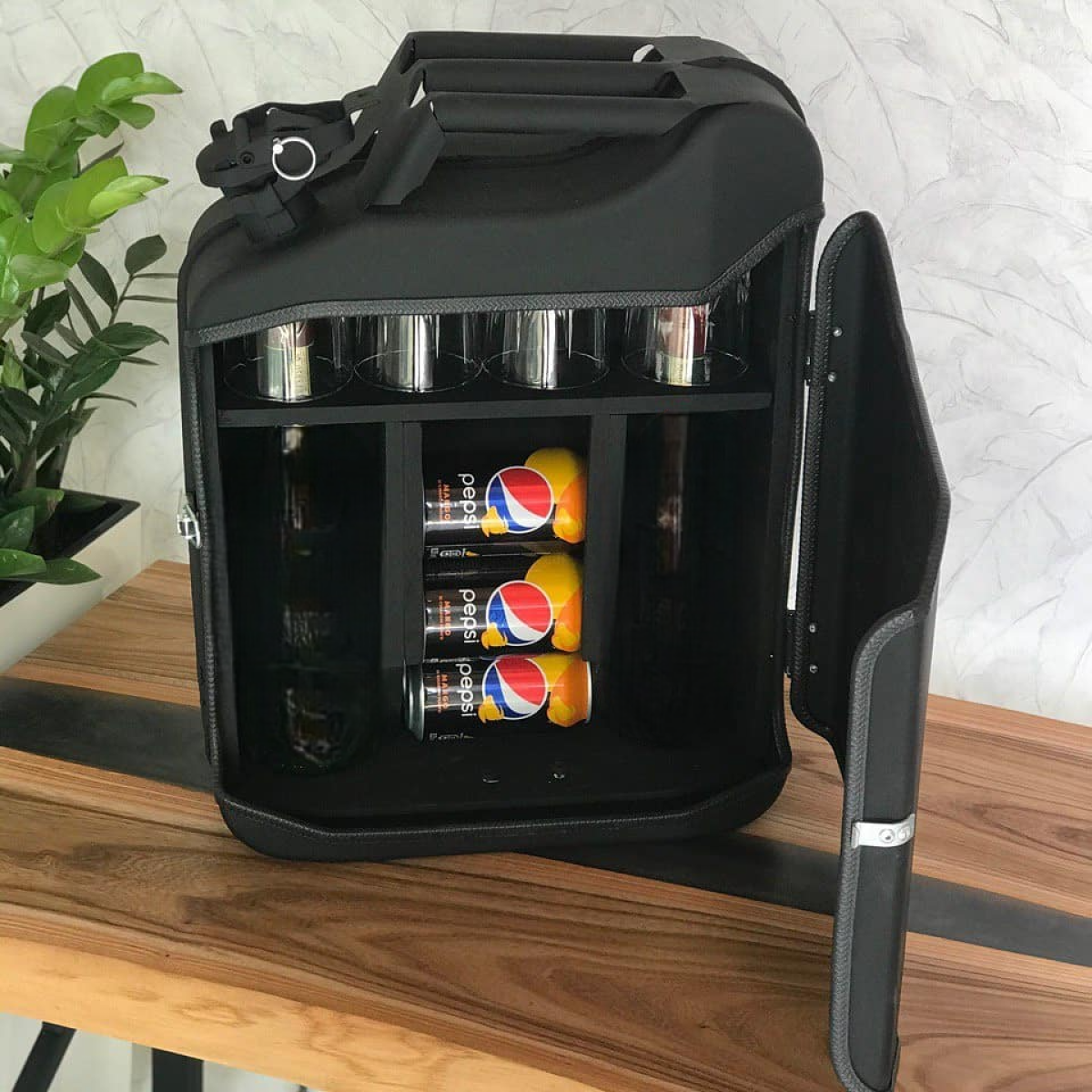 Каністра чорна на 20л. з посудом в подарунок для чоловіка “Міні бар“ / Сейф для алкоголю хлопцю