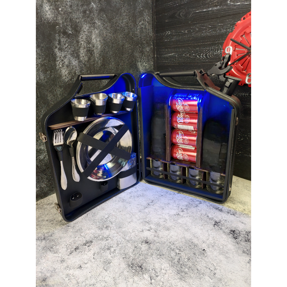 Міні бар каністра чорна на 20л. з посудом в подарунок чоловікові / Подарунковий набір хлопцю на 4 персони “Max“