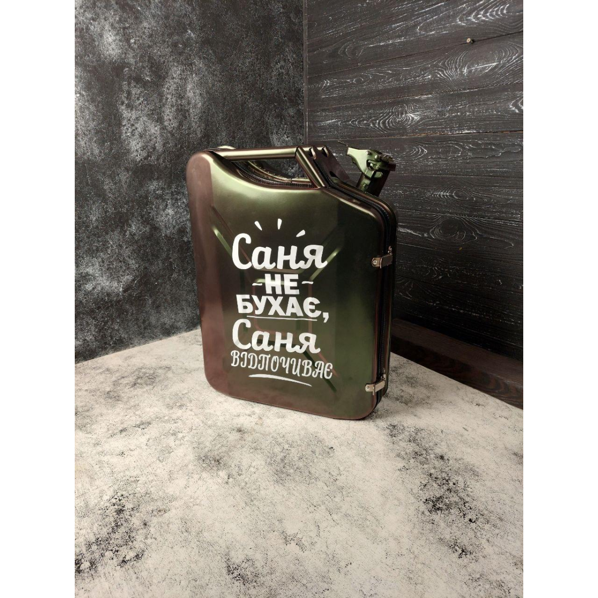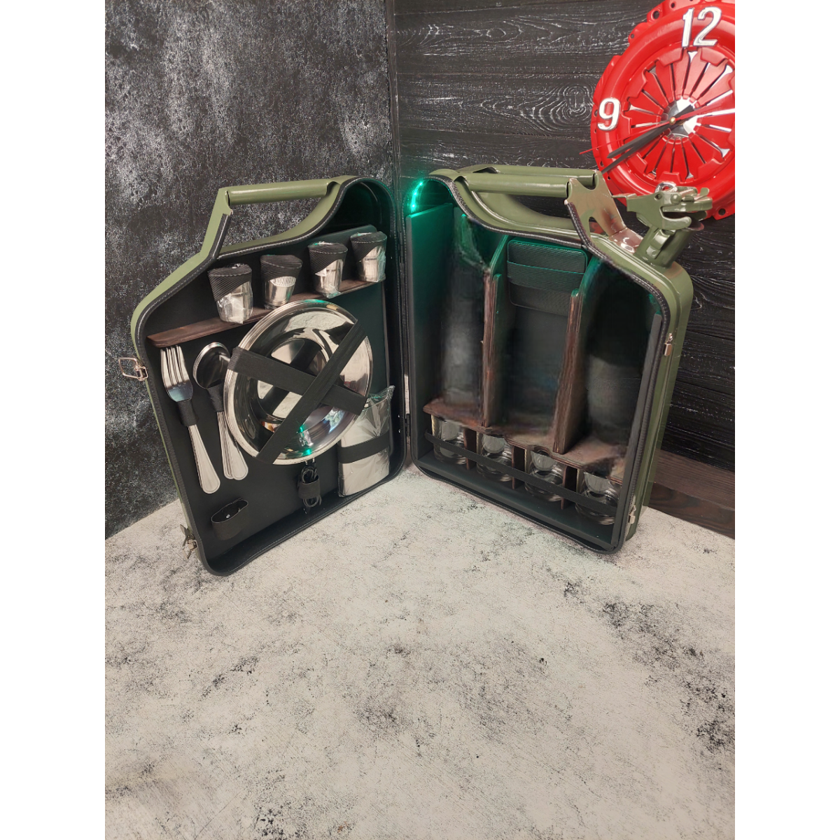 Міні бар каністра зелена на 20л. з посудом на 4 персони в подарунок чоловікові з підсвіткою і блютуз колонкою “Max“