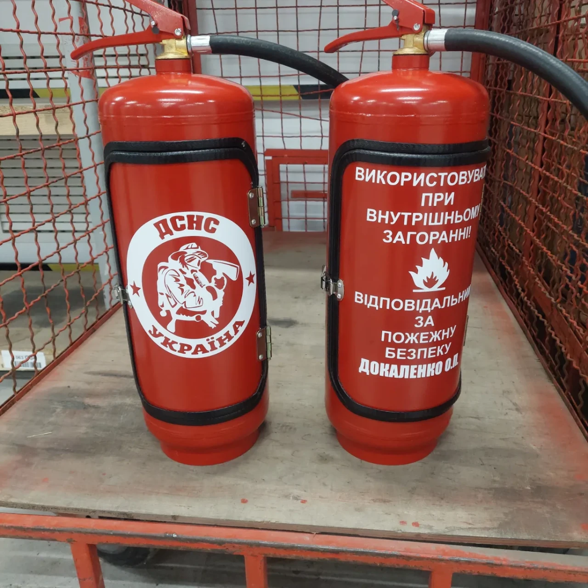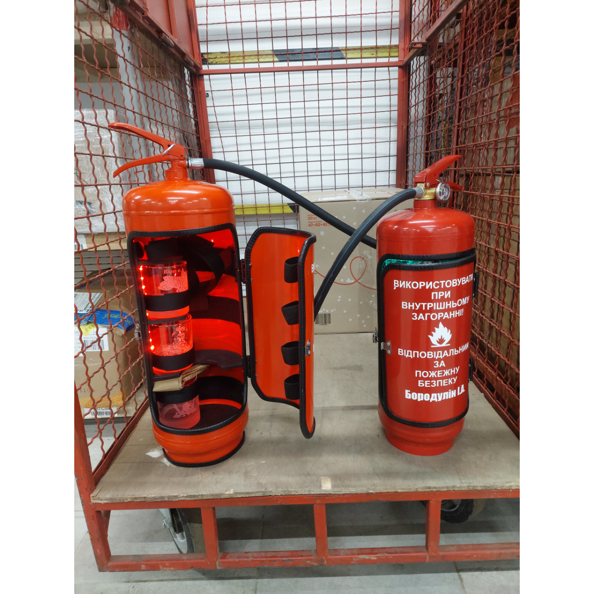 Міні бар вогнегасник червоний з посудом у подарунок для хлопця «Четвірка» / Подарунковий набір для чоловіка