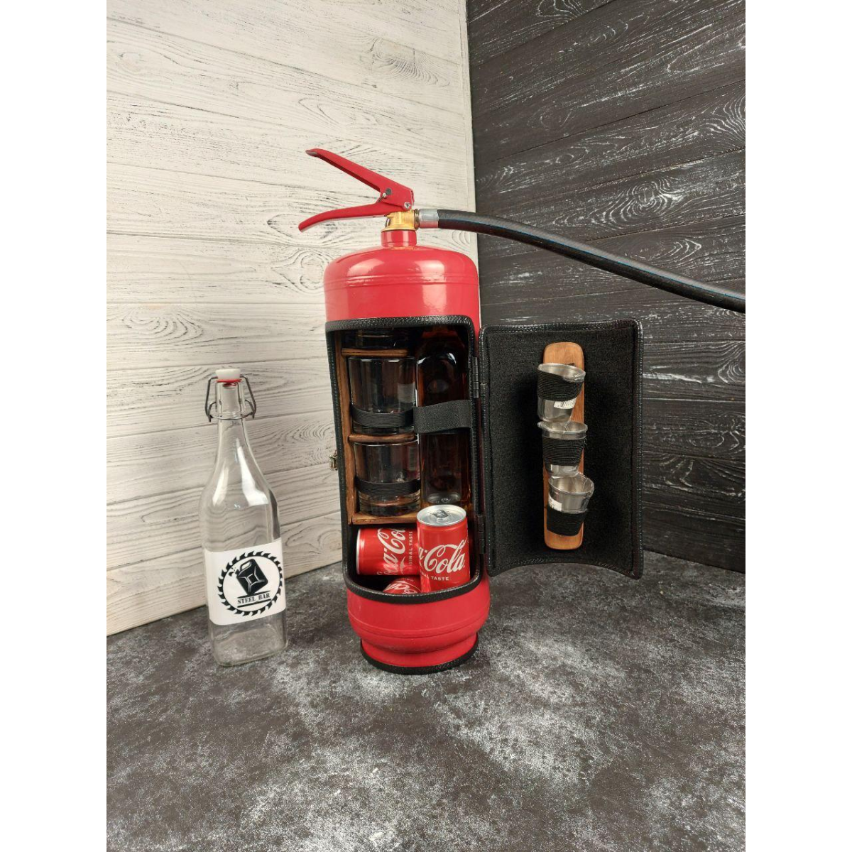 Міні бар вогнегасник червоний з посудом у подарунок чоловікові «Трійка» / Подарунковий набір хлопцю