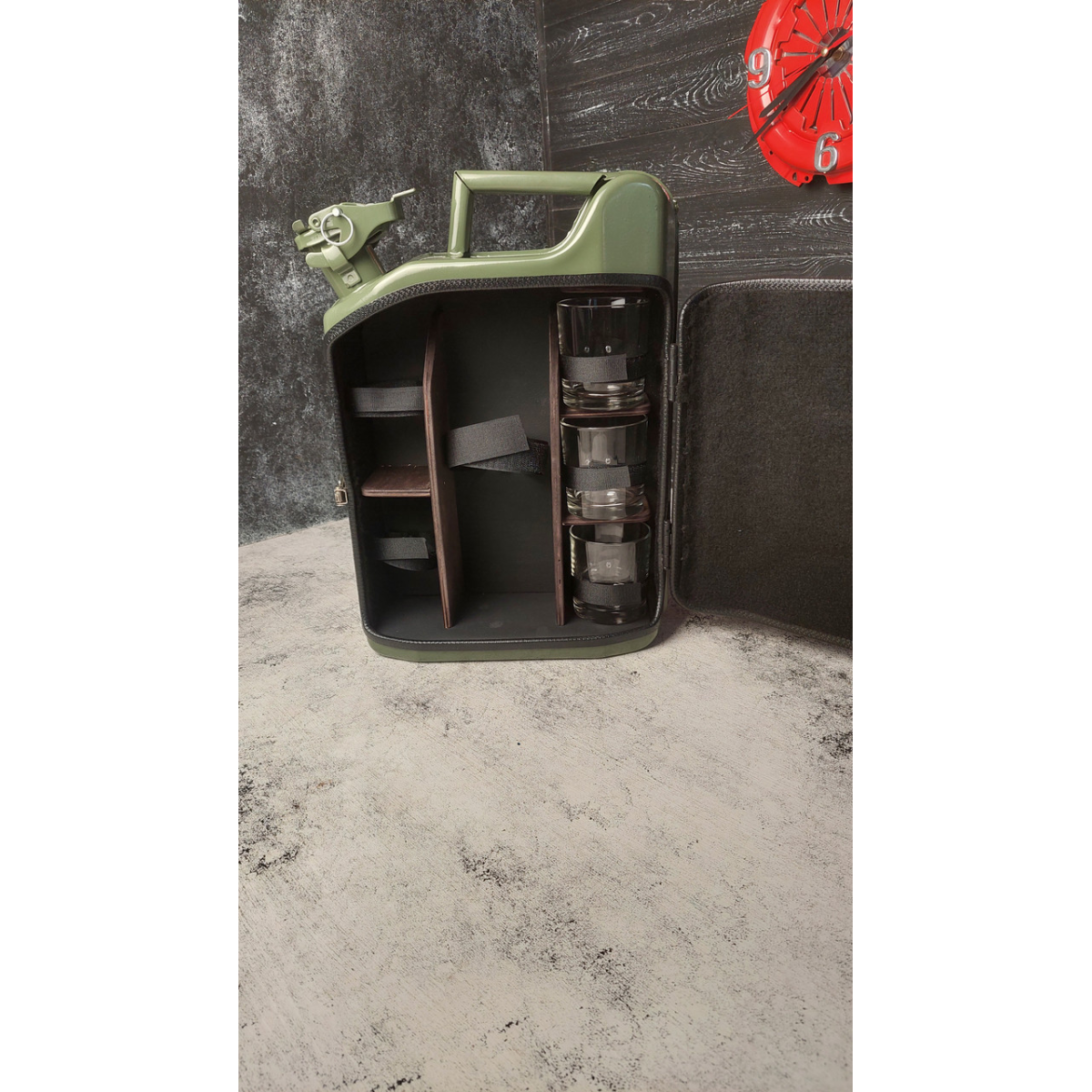 Міні бар каністра в подарунок на 10л. з посудом в подарунок зелена «Pirat» / Подарунковий набір чоловікові